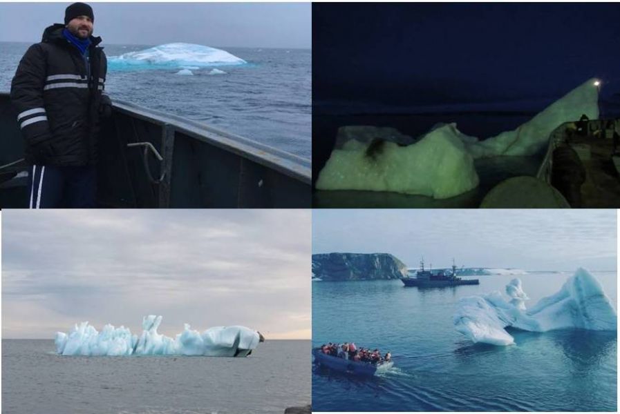 Отколотые части ледников в виде айсбергов относит далеко в море с довольно значительными скоростями. Они могут быть совершенно невообразимых форм и размеров. Несколько раз наше неледокольное судно сталкивалось с айсбергами.