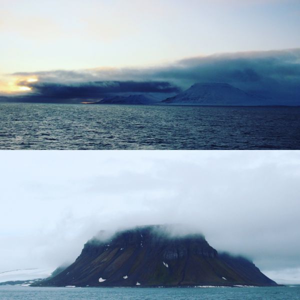 Почему почти все горы на Земле Франца-Иосифа плосковершинные и со схожей высотой? Потому что несколько тысяч лет назад этот архипелаг был огромным вулканом на дне моря, выступающие из воды вершины которого обтачивало суровое северное выветривание. И сейчас на любой вершине там можно обнаружить свидетельства: морские раковины, окаменевшие водоросли, скелеты древних морских животных и т.д.