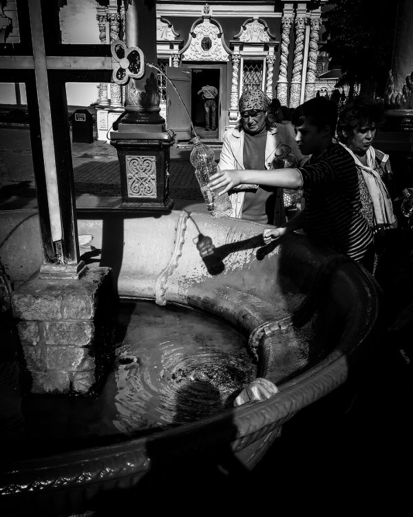 Из колонок вода всегда вкусная. Скучаю по колонкам... В Ленинграде их не было, конечно, кроме Стрельны, зато по улицам ходил точильщик ножей со своим нечто из колеса и ремня, кричал... И все выходили из домов – несли ножи. Даже не верится что это было... А вода такая, что действительно напиваешься, а не просто мокрая. Магия колонки!