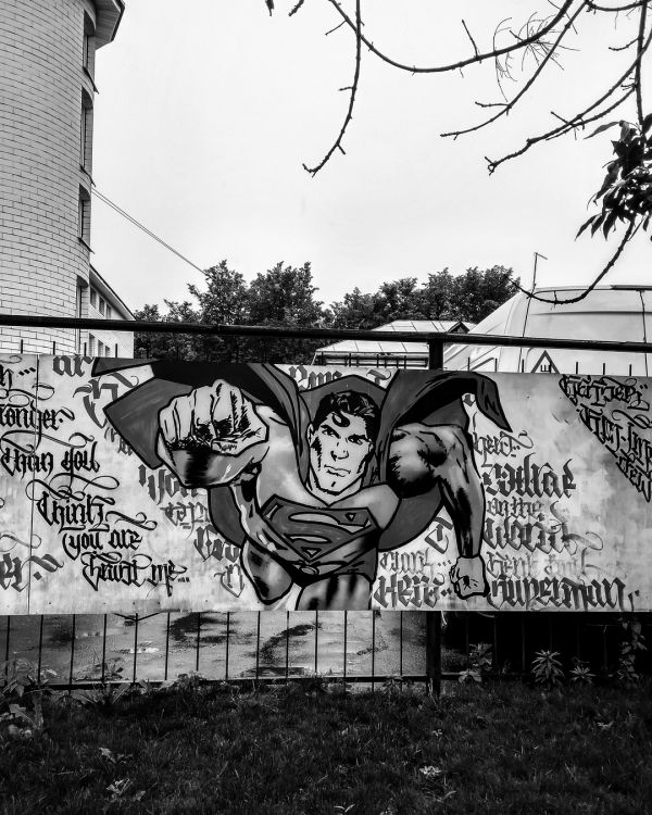 Вот в Мышкине – образцово-показательном туристическом городе, – испытал восторг и снимать можно было много чего. Очень долго ходил вокруг плаката «происхождение человека», где вместо обезьяны нарисована мышь. Но красиво снять не удалось, поэтому: Здравствуйте, богатыри земли Ярославской! Музей современного искусства в Ярославле