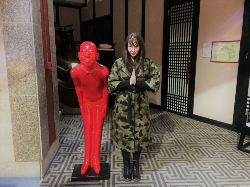 Ресторан расположился в одном из самых красивых павильонов комплекса, часть которого когда-то была отдана под китайский деловой центр. Предвкушая что-то грандиозное, я направилась искать вход. Приветливые китайские фонарики издалека освещали путь до красивых дверей, охраняемых двумя скульптурами китайских воинов.