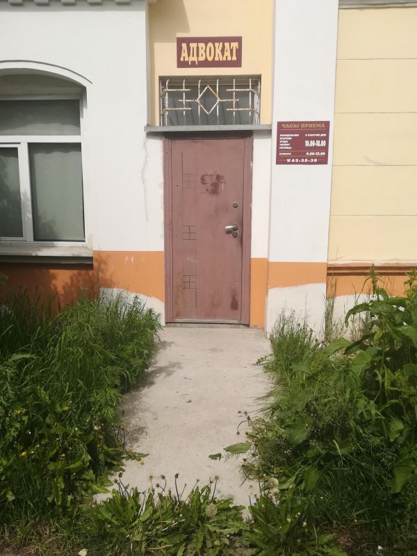 А вот это фасад выглядит так, как будто адвокат уже сидит в тюрьме или он скрывается от налоговой...