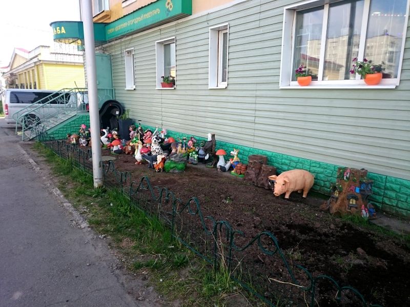 "Психоделика" - это первое, что я подумала, когда увидела это, но потом приглянулась - все статуи стоят с ценниками. Эти скульптуры продаются для ландшафтного дизайна, но со стороны выглядит устрашающе...