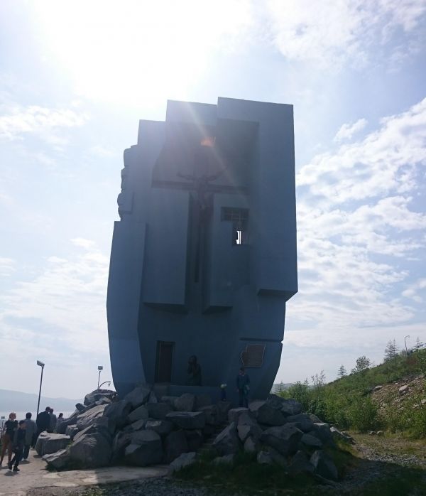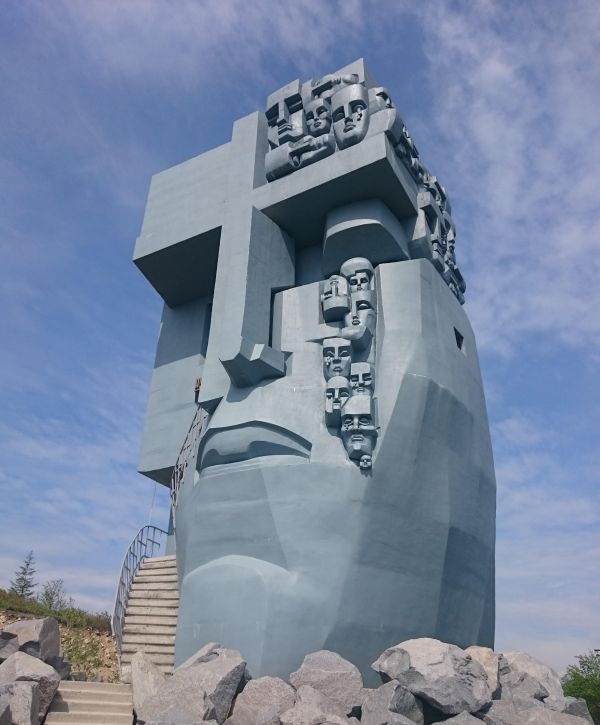 15-метровую скульптуру видно издалека, т.к. она расположена на сопке под названием Крутая. Место выбрано не случайно. Именно здесь происходило распределение заключённых. Подняться к мемориалу можно по лестнице из 100 ступенек: