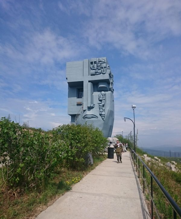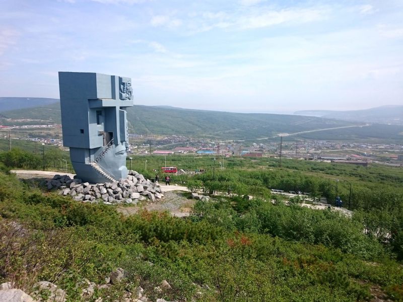 Направление маски тоже выбрано неслучайно - она смотрит в сторону бухты Нагаева, куда доставляли репрессированных в 30-50-е гг.