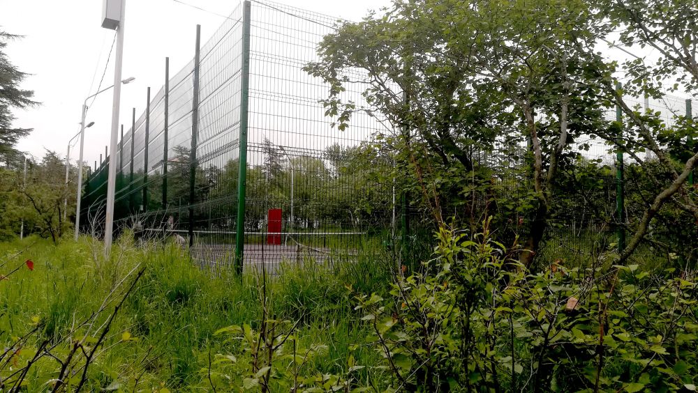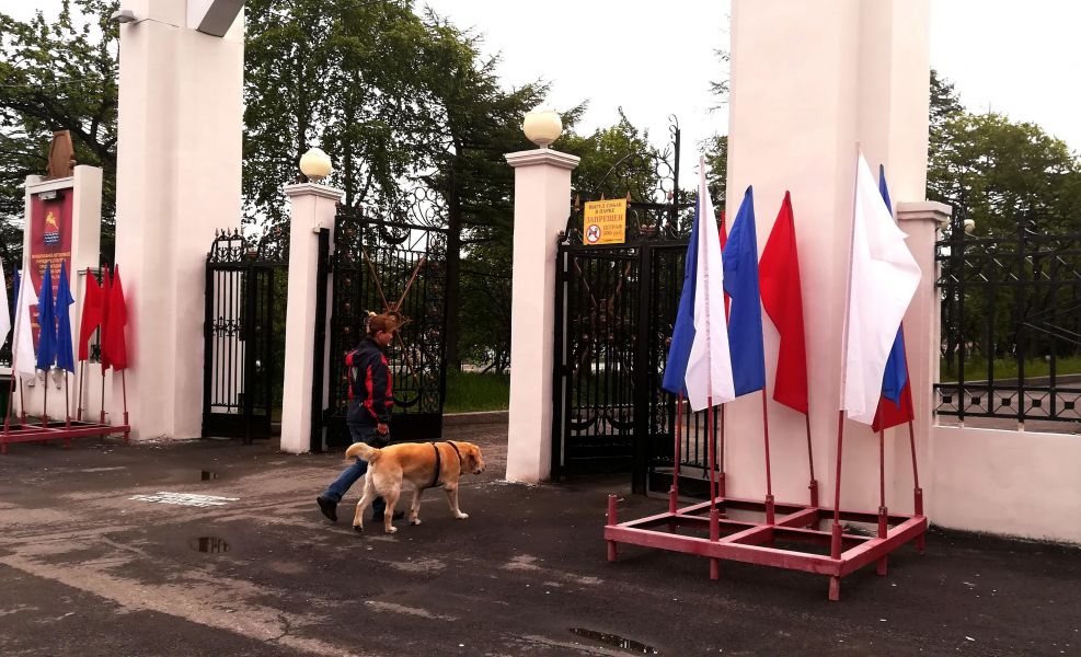 Возле парка висит объявление о том, что выгул собак запрещён и даже за это назначен штраф в размере 500 рублей, но местных это не останавливает: