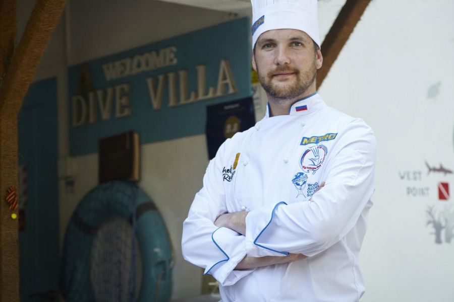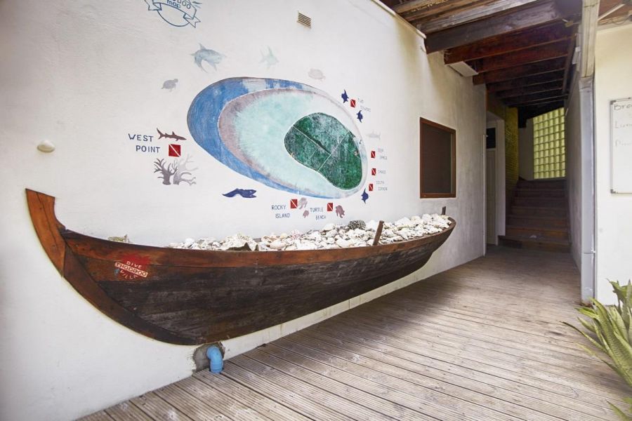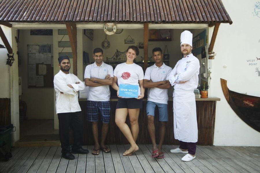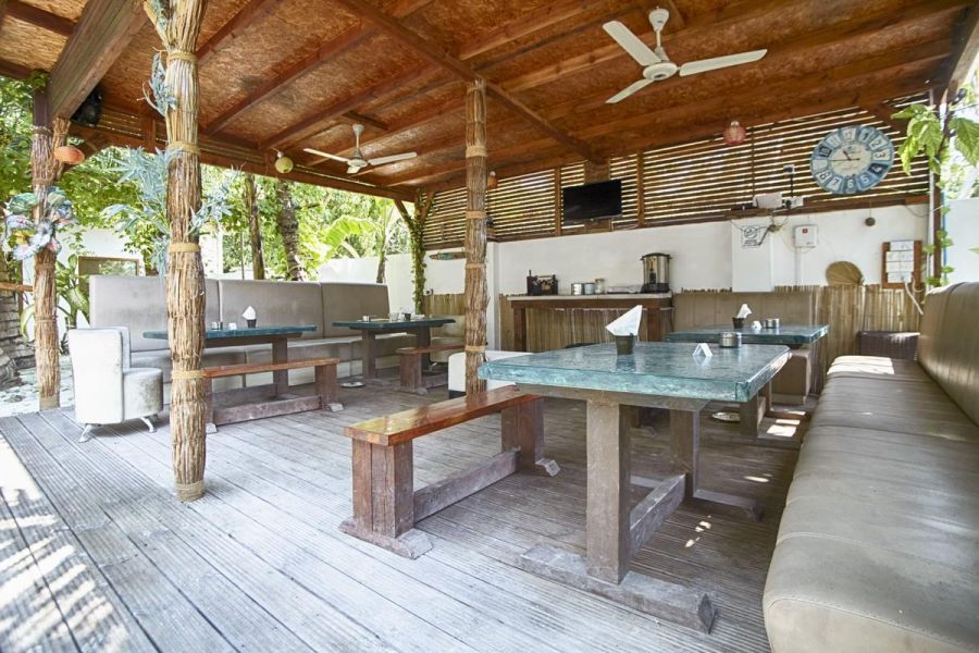 Единственный ресторан европейской кухни находится в северо-восточной части острова, на втором этаже гестхауза Dive Villa.