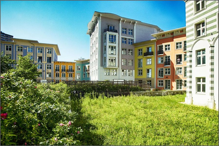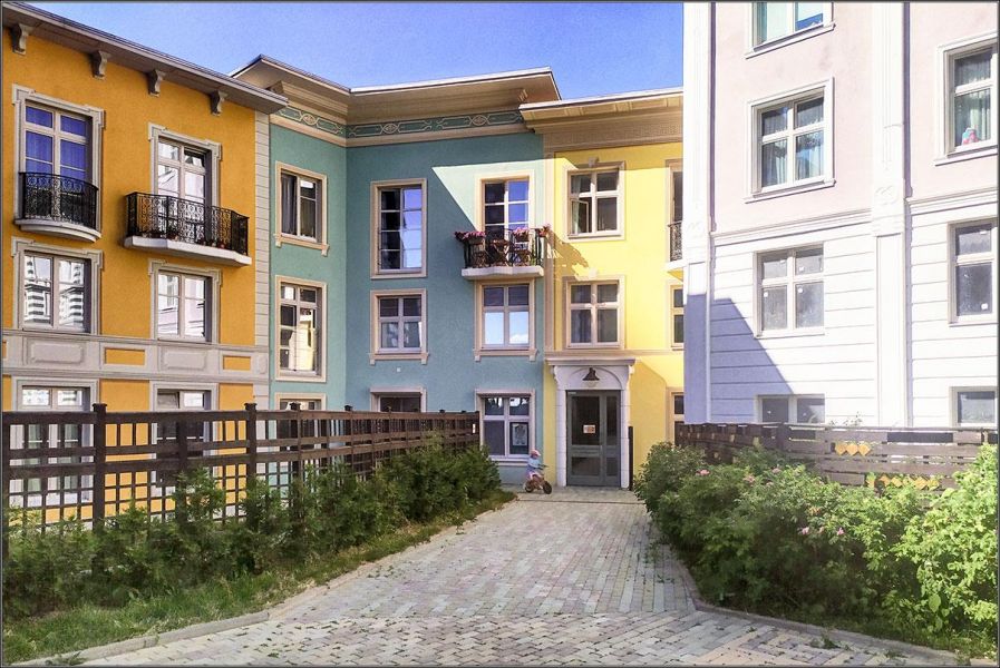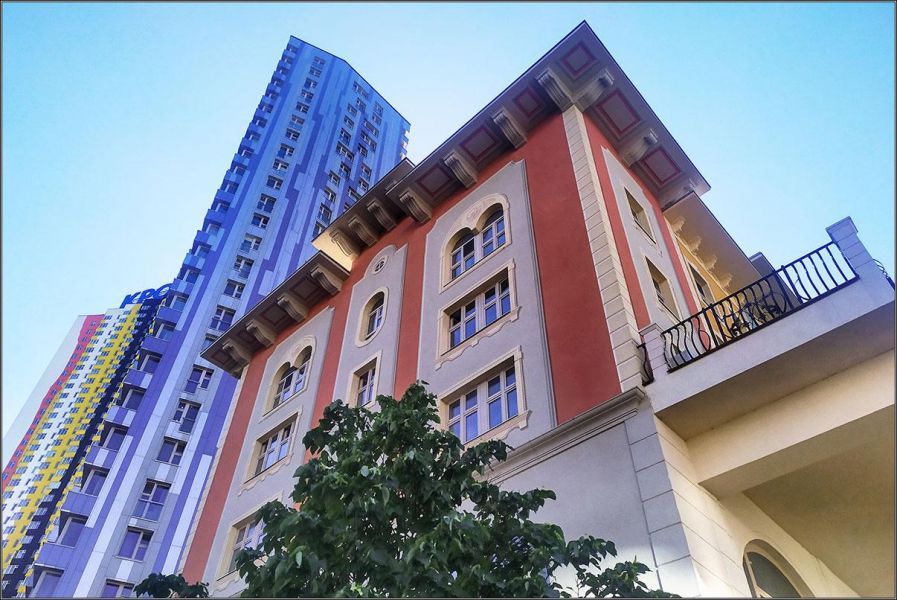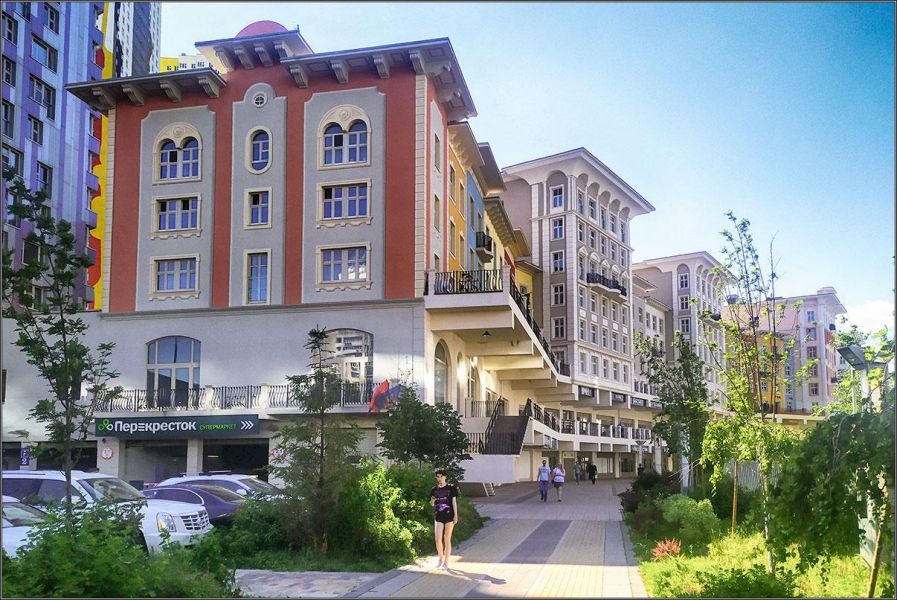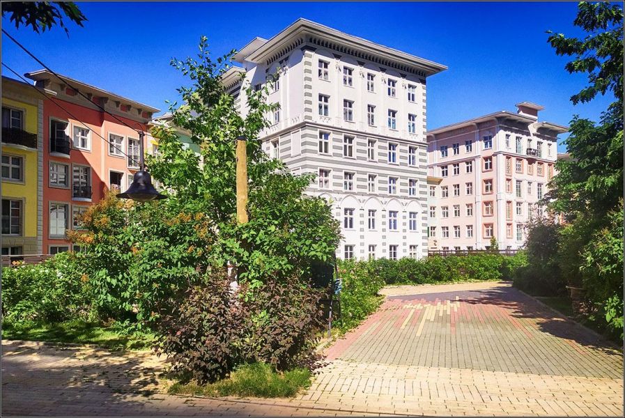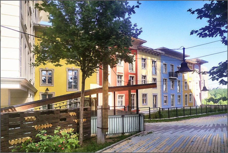 Сами дома построены так, что напоминают европейский городок: разноэтажные, выкрашенные в разные цвета, и с орнаментами на стенах. Если не оборачиваться назад, к жилым небоскребам, полное ощущение, что ты прогуливаешься где-то по итальянским улочкам.