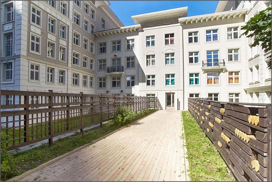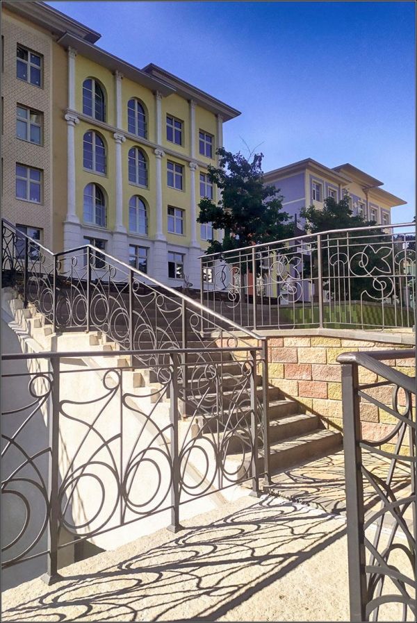У них там парк, маленькие дворики, скульптуры на дорожках, цветы, лавочки и беседки.