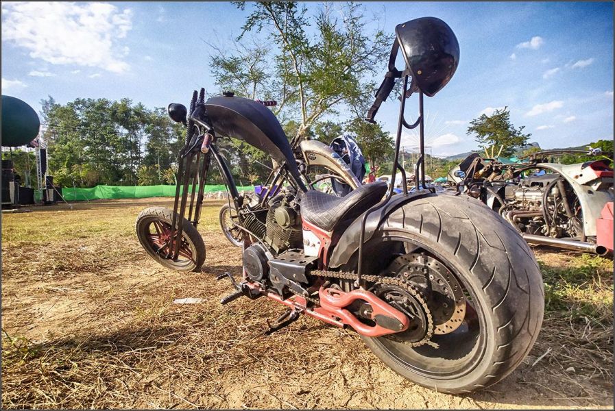 Еще когда дом искали, видел на дороге толпы байкеров на самодельных чопперах, трайках, и тюнингованных харлеях. А оказалось, что у нас тут байк-фестиваль проходит. Заглянул вчера к ним, пофотографировал образцы кустарного дизайна.