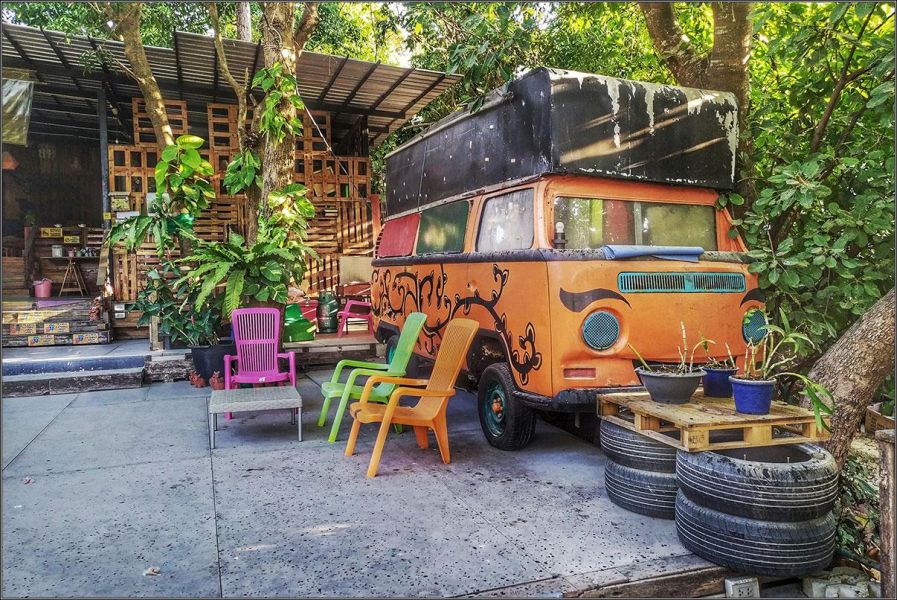 Последний раз мы были здесь семь лет назад, в 2013 году. Приехали с Лангкави поздним паромом, долго бегали по острову в поисках жилья, все было занято, в итоге нас, уже отчаявшихся что-то найти, подхватил в кафе местный художник Джо и сдал нам палатку за 200 бат в своей мастерской.