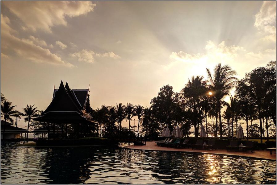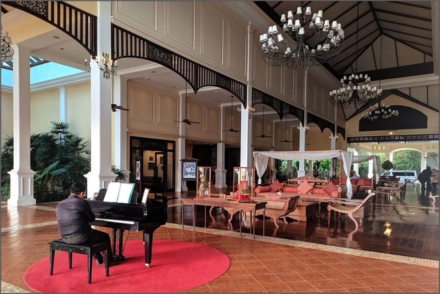 А тут - раз! - рядом отель большой-красивый, натуральный прям Софитель, с гольф-полями, пианиной и бассейн там у него с джакузями.