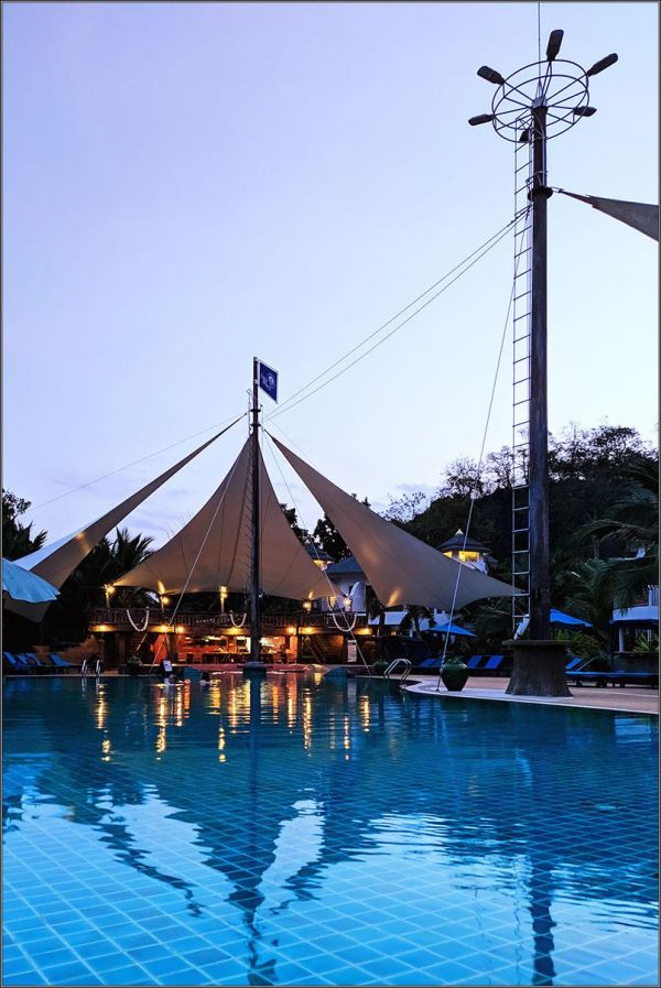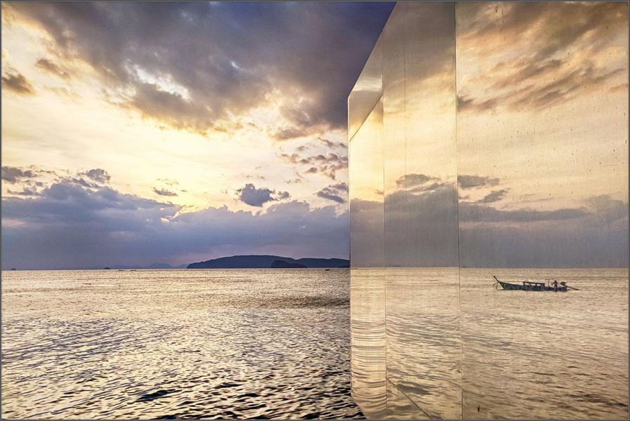 Отель Krabi Resort - большой, солидный и красивый. Но на берегу там стоит странный арт-объект: большой зеркальный контейнер с непонятным ужастиком внутри. Но фотогеничный, с этим не поспорить, особенно на закате :)