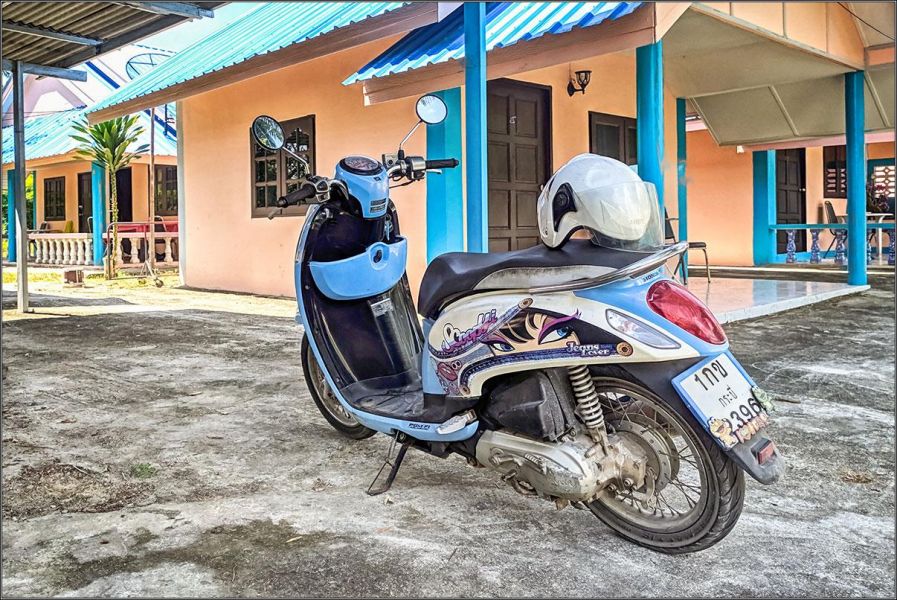 Лаковый рояль. Крупный, вместительный, солидный, удобный. Большой багажник, можно ехать на дальние расстояния, есть место, чтобы вытянуть ноги. Один из моих любимых байков в Таиланде.