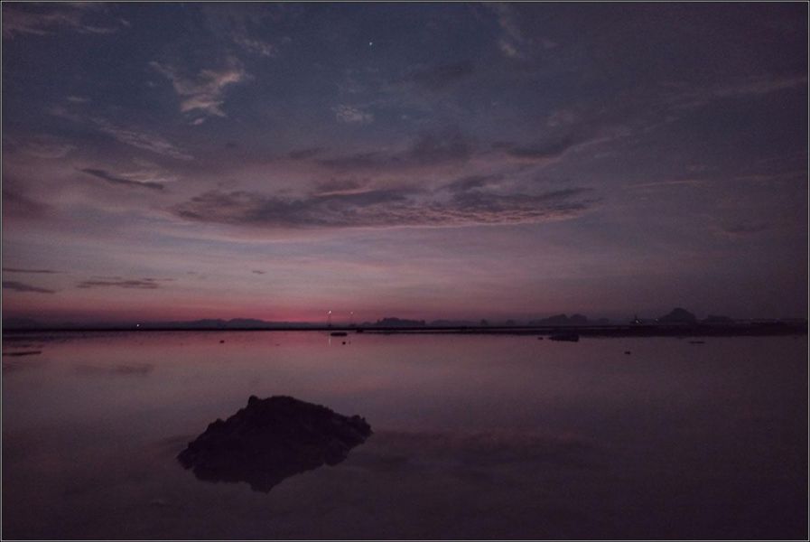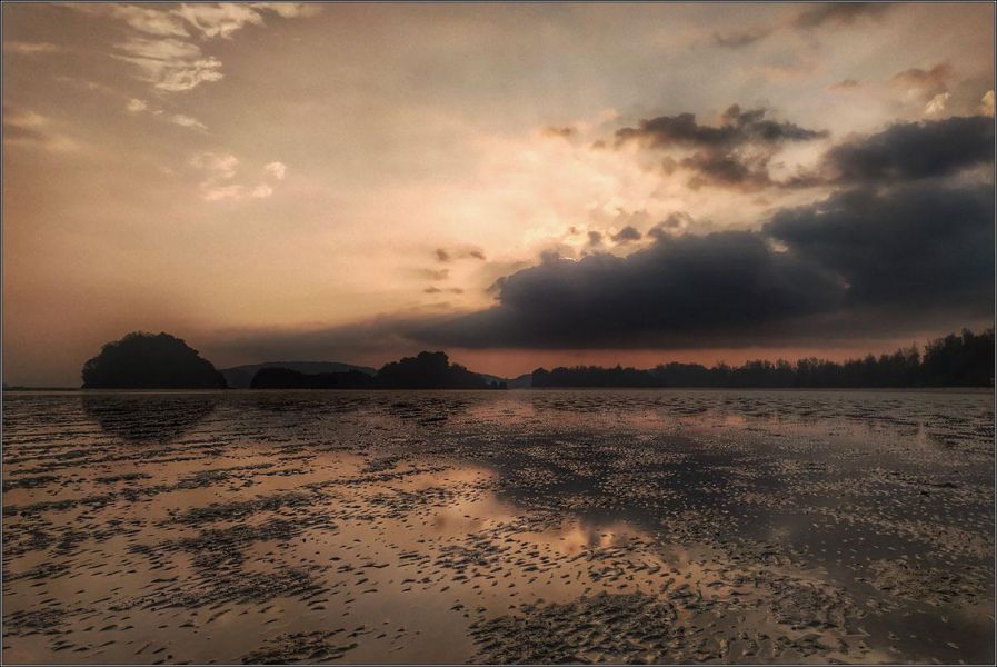 На закате - отлив, и дно обнажается метров на триста от берега. Тоже не искупаешься, зато фотогенично.