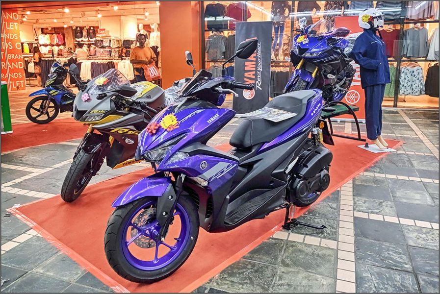 В Малайзии привычный тайский Yamaha Aerox называется NVX. Вот он, рядом с модными спортбайками R15 и R3. Почему так - непонятно, скорее всего, на малайском слово "аэрокс" звучит как-нибудь неблагозвучно. Это часто случается с названиями моделей.