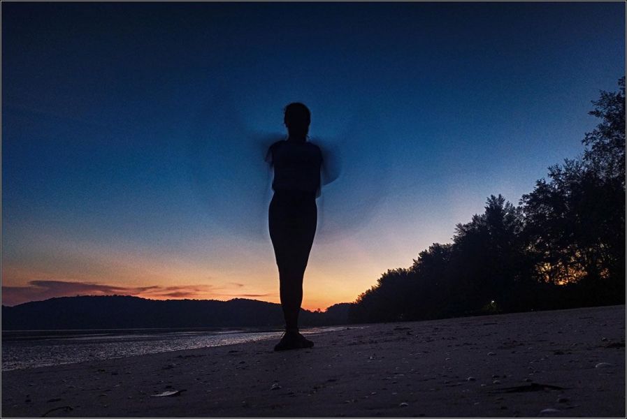 Днем в Краби стоит такая жара, что делать ничего не хочется. Максимум, на что нас хватает - с утра сгонять искупаться, днем проехать по магазинам, съездить пообедать, встретиться с друзьями, а уже вечером, на закате, поехать на какой-нибудь пустынный пляж, где жена бегает и занимается спортом, а я фотографирую все подряд :)
