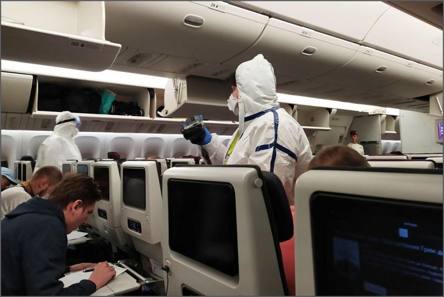 В Москве после посадки в салон заходят люди в защитной одежде и с тепловизорами. Проходят по рядам, меряют температуру у каждого. Дают заполнить анкеты на въезд: где был, когда улетел, телефон-адрес, имя-фамилия.На выходе - дополнительный контроль, стоят ряды столов с медиками, нужно присесть, сдать анкету, пройти собеседование и получить памятку об обязательной 14-дневной самоизоляции. Но все эти дополнительные препятствия занимают в общей сложности минут двадцать, так что не напрягают.