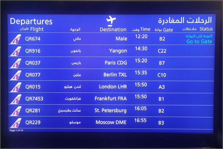Кто меня поддерживал все это время - так это сайт катарских авиалиний и flightradar24: на первом наши рейсы постоянно показывались как "on time", а на втором было видно, что самолеты взлетают и садятся в штатном режиме.А 26-го, в разгар новостей о закрытии России, я вообще прошел онлайн-регистрацию и спокойно получил посадочные талоны на e-mail.