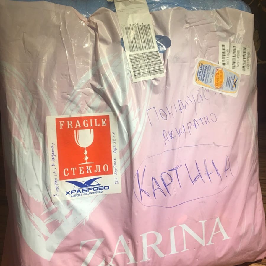 Кроме того, грузчики заботливо прилепили наклейку «Стекло». На наклейке тоже были приписки «Вообще-то это картина» и «Будем аккуратны с картиной Виктории».