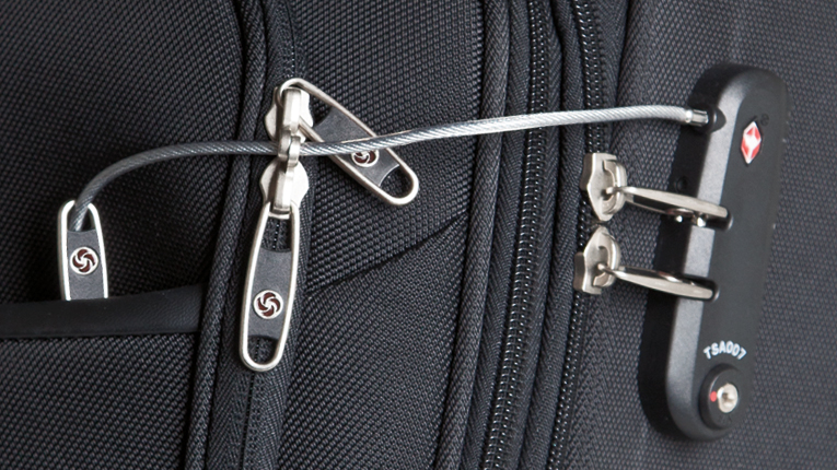 купите замок для багажа. Это не убережет от воровства на 100 %, но грабители, скорее, выберут чемодан без замка, так как с ним легче справиться. Некоторые модели сумок имеют встроенные системы, фиксирующие положение бегунков под кодовым замком. Для стандартных чемоданов можно купить специальные тросы, которые скрепляют ручку и бегунки, делая их неподвижными;