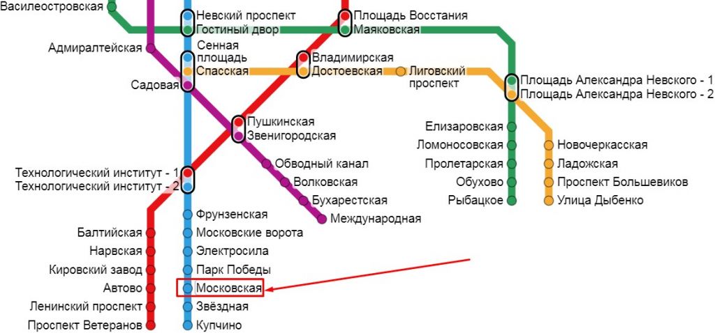 Ближайшая к воздушной гавани станция метро в городе — «Московская», доехать до неё можно по любой ветке.