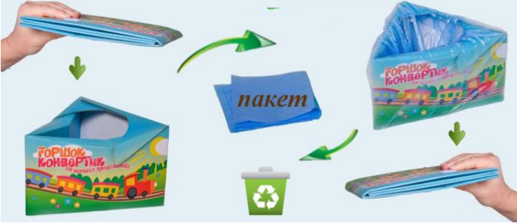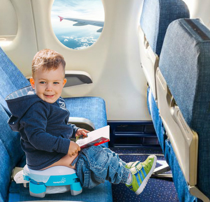 Лучше всего подходят для полета дорожные складные горшки с одноразовыми вкладышами. У них есть множество преимуществ: они недорого стоят, занимают немного места, удобны в использовании, выпускаются в нескольких вариантах. Желательно пользоваться горшком в предтуалетной зоне, но на самом деле детей часто сажают на горшок прямо в проходе, что вызывает недовольство других пассажиров.
