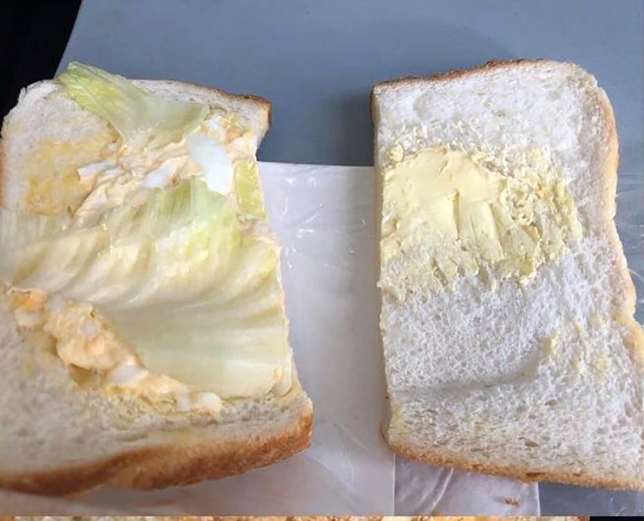 В бутерброды и бургеры часто кладут листья салата, чтобы он был хрустящим, а кусочки хлеба не намокали. Jetstar пошли дальше. Пассажиру Нику Мосли достался сэндвич, состоящий из листа салата и маргарина.