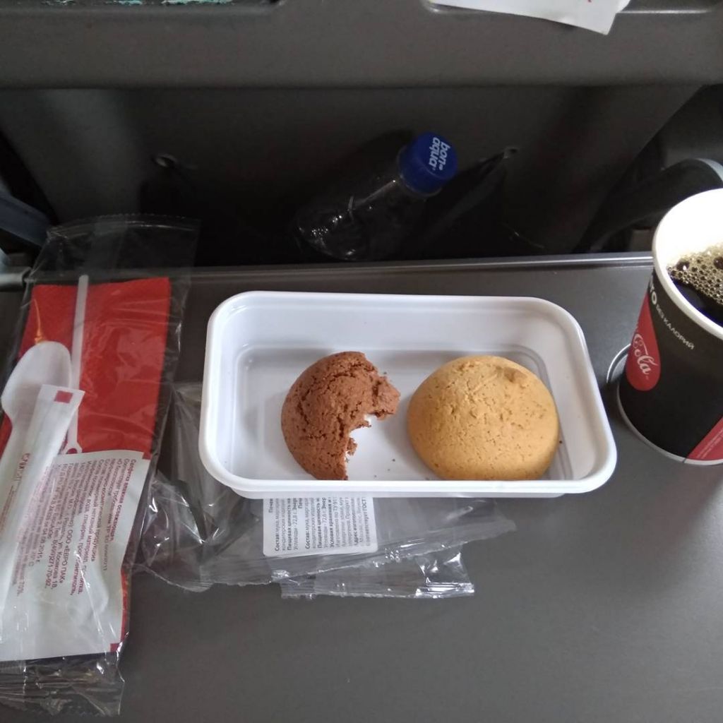 На угощения российских авиалиний жалуются редко. Однако, промахи случаются. Вот, например, авиакомпания «Россия» в качестве угощения предложила два печенья.