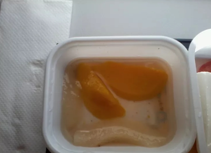 Международные украинские авиалинии угощали пассажиров чем-то неизвестным науке. Возможно, это десерт, но мы не уверены.