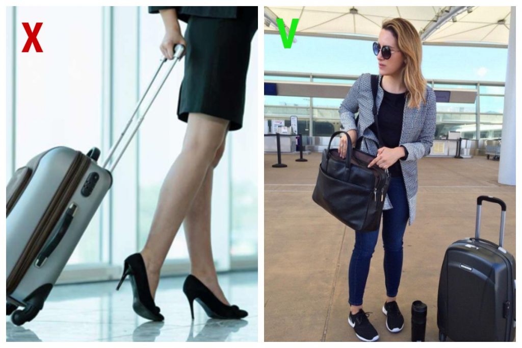В полет всегда одевайте устойчивую обувь, хорошо фиксирующую ноги. Никаких высоких каблуков и шлепанцев. Во-первых, покинуть самолет сможете быстрее, во-вторых, никого не травмируете. Согласитесь, быстрее эвакуироваться можно в удобной обуви, а не на высоких каблуках, цепляющихся за все возможные выступы. К тому же каблуки могут повредить надувной трап. Босиком по осколкам, разбросанным вещам и горящему салону — тоже не вариант.