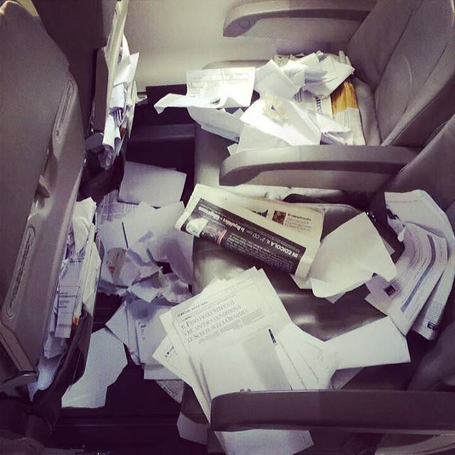 Казалось бы, быть пассажиром самолёта легко. Плюхнулся в кресло и сиди спокойно: листай бортовой журнал, смотри фильмы, читай книги и жди, когда принесут еду. Даже намусорить сложно – постоянно курсируют стюардессы с урной для мусора. Однако некоторым это сделать все же удается.