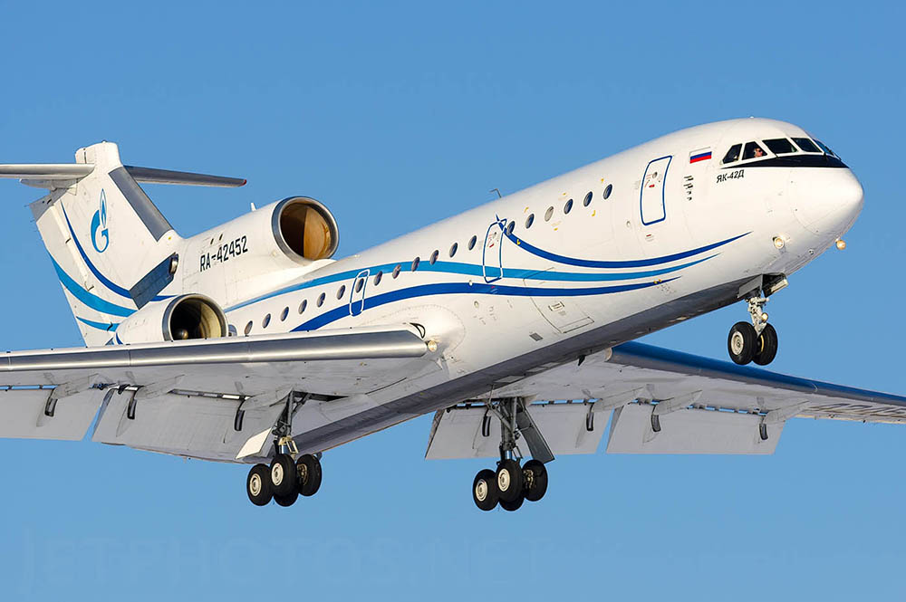 - ЯК-42. Также весьма удобен. Туристы могут застать его на рейсах авиакомпании «КрасАвиа». В своё время являлся лучшим самолётом, на котором летали почти во всех странах мира. Сейчас используется редко, выглядит заметно «постаревшим». При этом не потерял своего шарма и комфорта.