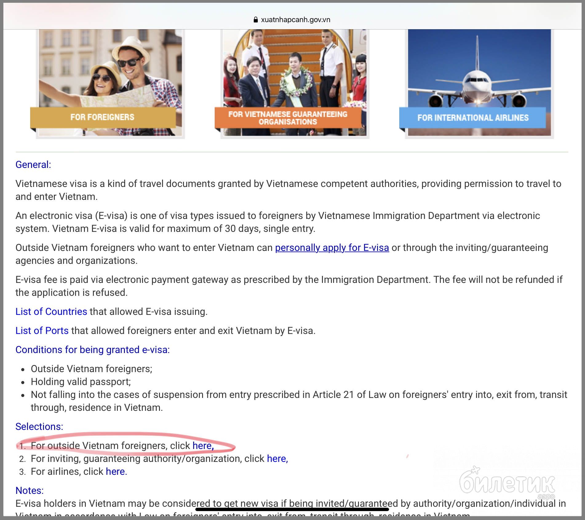 сайт Департамента иммиграции Вьетнама и кликнуть на раздел For outside Vietnam foreigners.