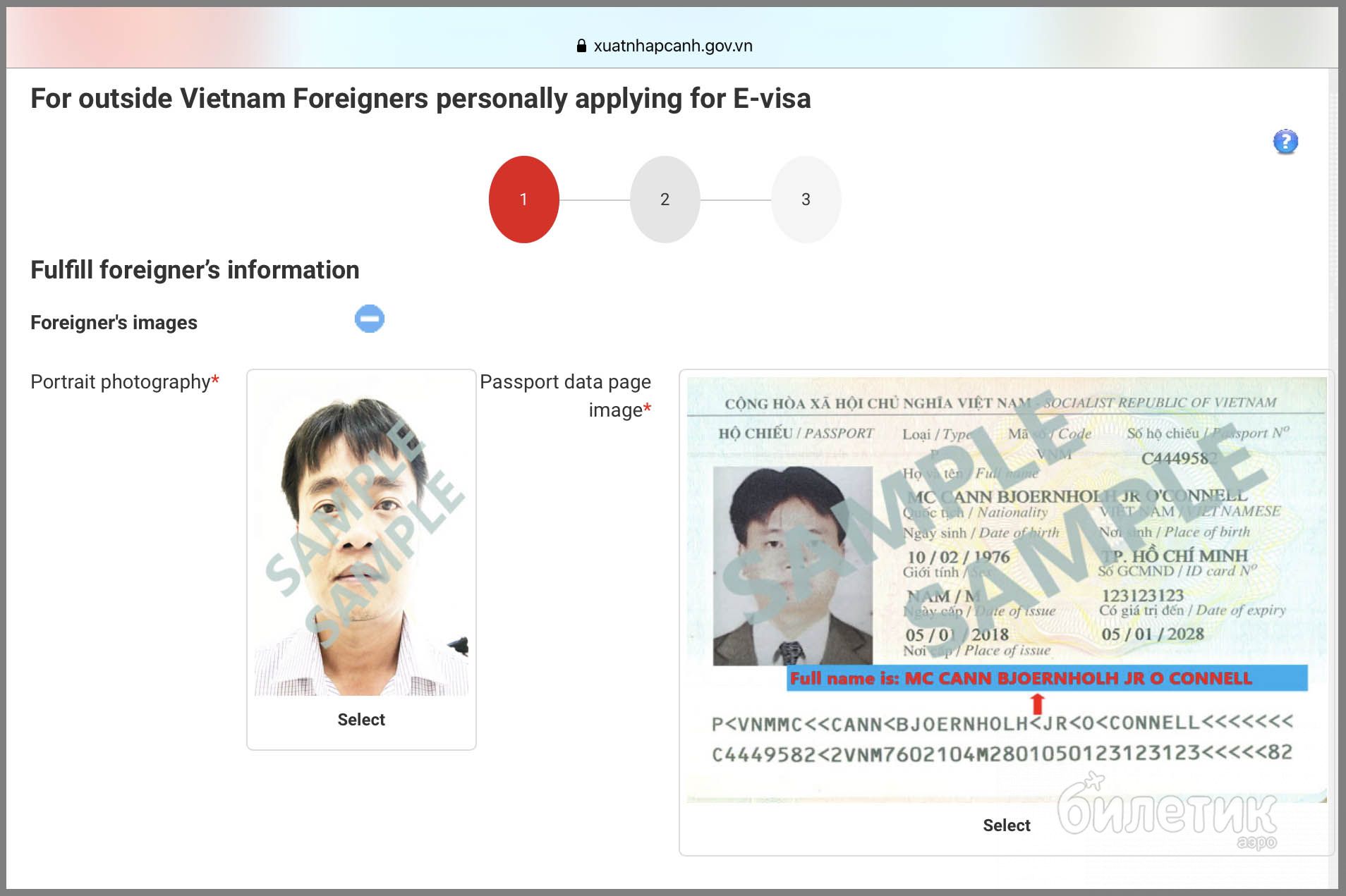 Для получения E-visa нужно загрузить отсканированную первую страницу паспорта. Также потребуется отдельно загрузить фото из документа или другое фото, где вы смотрите прямо, без очков.
