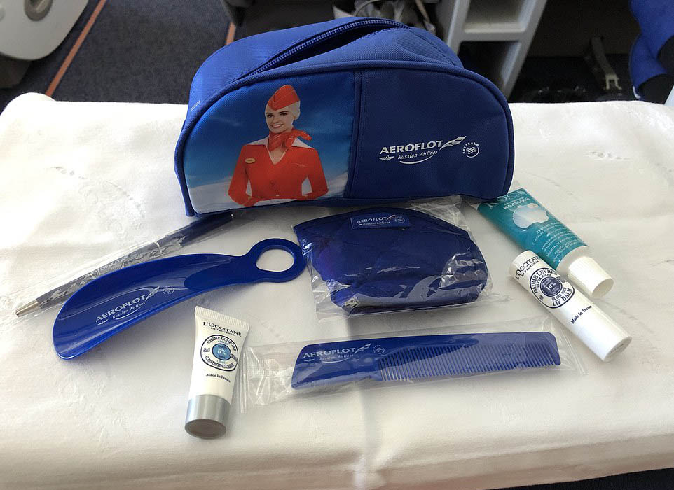 Приятным сюрпризом для журналистки оказался индивидуальный пакет с дорожным набором, куда входят тапочки, маска для сна, шариковая ручка, зубная щетка, зубная паста, расческа, рожок для обуви, бальзам для губ и крем для рук от французского бренда L’Occitane (особый восторг для каждой девушки).