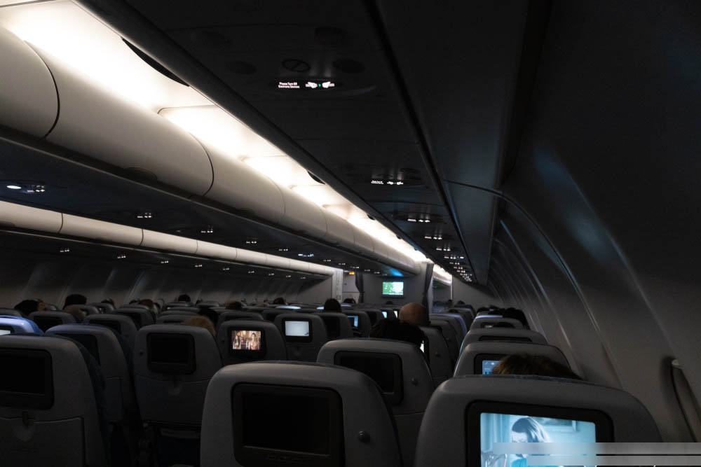Спинка кресел в экономклассе откидывается, а подушка и плед из дорожного набора помогают разместиться с большим комфортом и поспать пару-тройку часов. На ночных рейсах основное освещение выключают, поэтому сну пассажиров ничего не мешает.