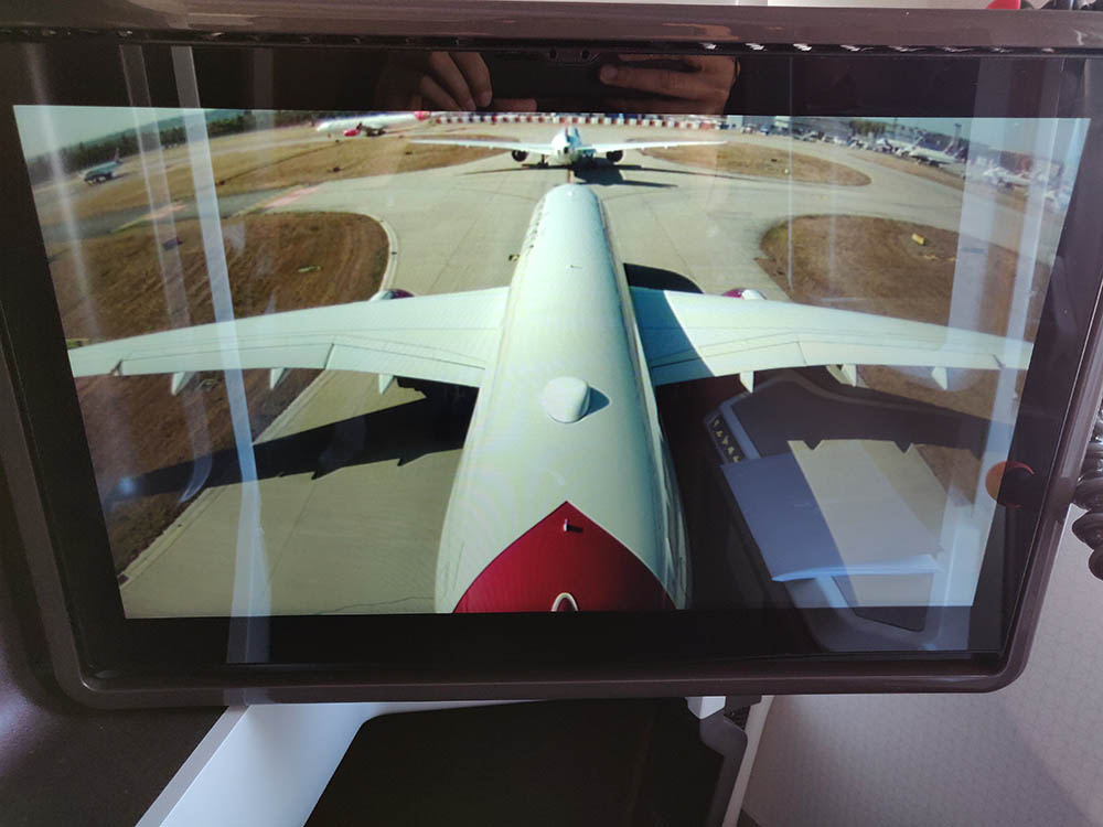 Наряду с более чем 100 часами фильмов и 300 часами телешоу, пассажир может в режиме онлайн наблюдать за полётом. Камера, расположенная в хвосте салона, позволяет всем клиентам получить доступ к онлайн-трансляции. Видео записывается в реальном времени и в разрешении Full HD.