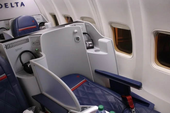 Первый класс — или иначе Delta One — насчитывает 16 кресел, установленных в конфигурации 2-2. Сиденья у иллюминатора не имеют прямого доступа к проходу, однако за счёт расположения под небольшим углом и небольшой перегородки они предполагают немного большую конфиденциальность. Все кресла оборудованы сенсорным управлением и могут полностью раскладываться. В разложенном виде спальное место имеет длину около 193 см, что вполне соответствует росту среднестатистического пассажира. Всем путешественникам Delta One кроме специально разработанного меню также доступны видеоэкраны, с предустановленной системой развлечений, яркость которых настраивается индивидуально — что особенно важно во время ночных рейсов.