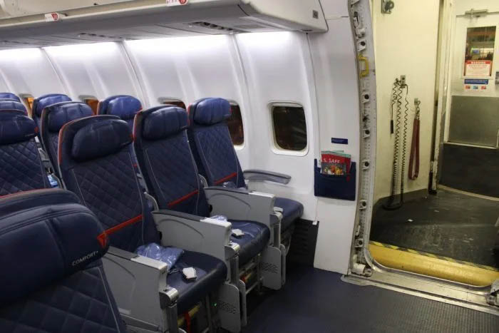Кабина Delta Comfort+ оборудована 44 креслами в конфигурации 3-3, которые представляют собой те же сиденья класса Main Cabin только с увеличенным пространством для ног. Всем пассажирам также доступна система развлечений и USB-розетки. Стоит обратить внимание, что посадка в Boeing 757 проводится через вторую левостороннюю дверь — поэтому первоначально на борт самолёта все пассажиры попадают через салон Delta Comfort+.
