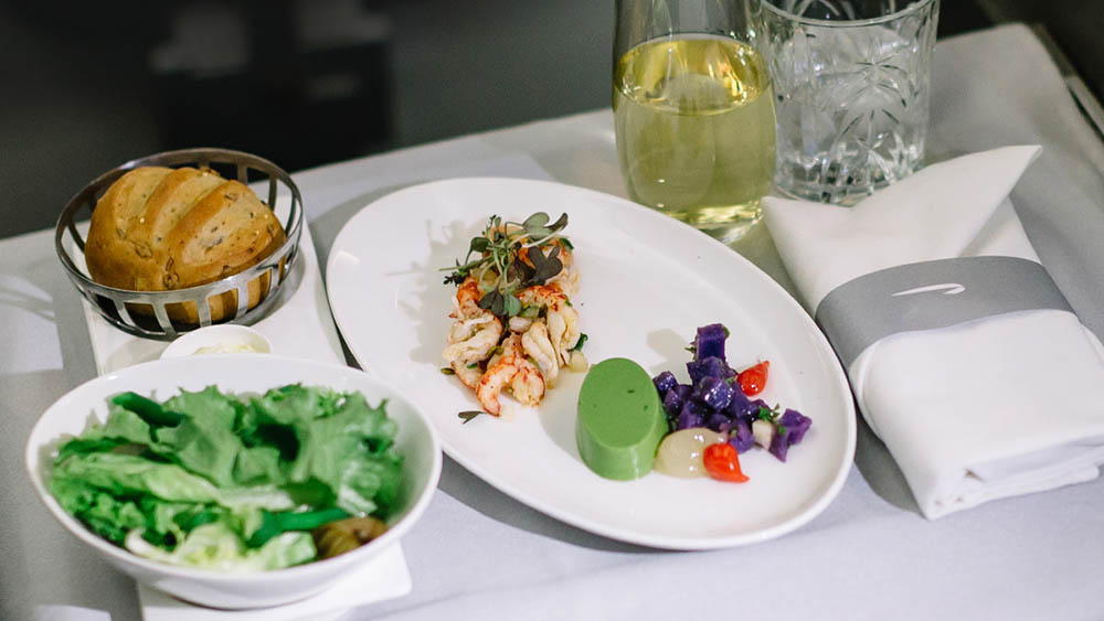 В меню класса обслуживания Club Suite представлены блюда международной кухни — авиакомпания предлагает деликатесы из сезонных продуктов от лучших шеф-поваров. Приём пищи состоит из закусок, салата, основного блюда и десерта. Для каждого блюда стюардессы подберут идеально подходящее вино. Меню можно заказать заранее или же выбрать из предложенного на борту. Между основными приёмами пищи доступен сервис Club Kitchen, который позволяет дополнительно заказать свежие фрукты, йогурты, сэндвичи, салаты или десерты.