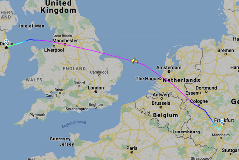 - Маршрут: Франкфурт-на-Майне (FRA) — Дублин (DUB).