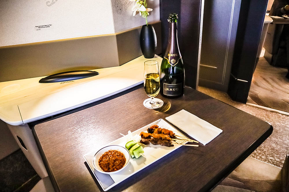 Только вы успеете устроиться в комфортном кожаном кресле, вам сразу же принесут аперитив Dom Perignon Brut или Krug Vintage. Отличное начало полёта!