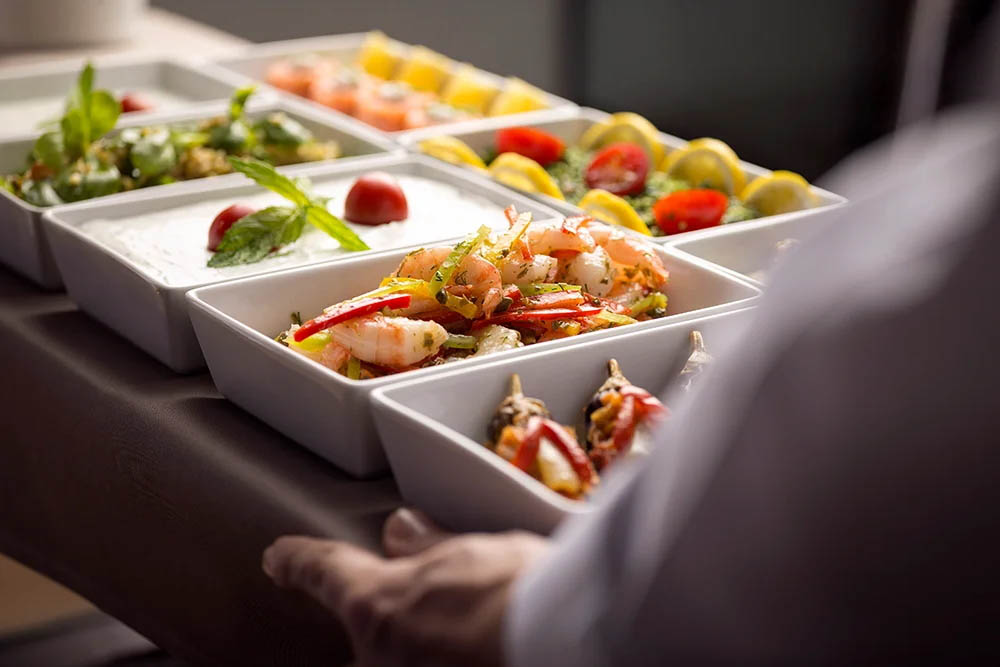 Всем пассажирам бизнес-класса на рейсах предлагаются приветственные напитки, также на протяжении всего полёта путешественники могут заказывать чай, кофе и разнообразные прохладительные напитки (включая алкоголь).Рацион питания зависит от длительности рейса: