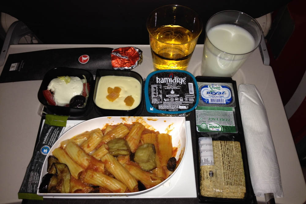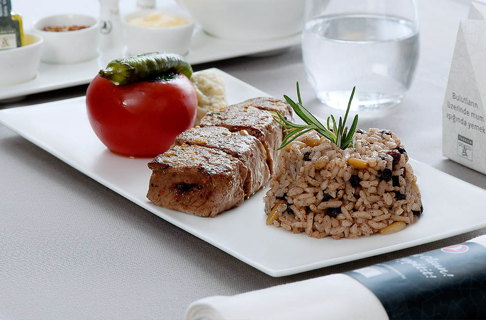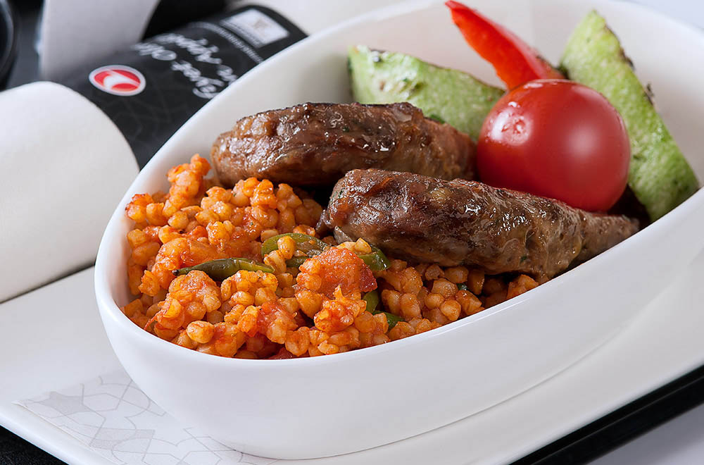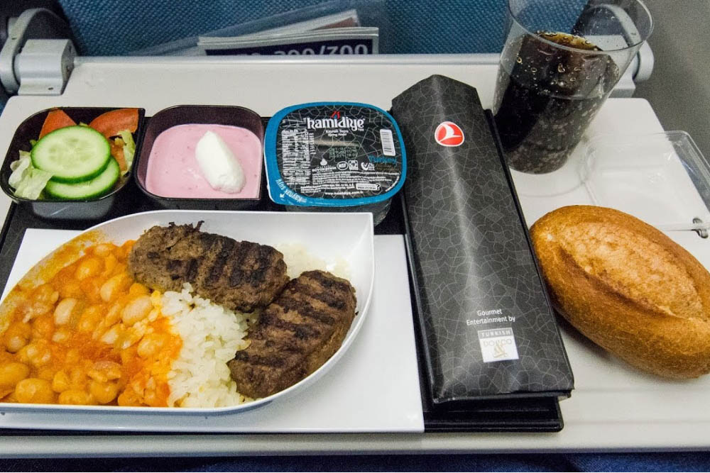 - на внутренних (непродолжительных) рейсах сервируется одно горячее блюдо, путешественникам предлагают отведать местные турецкие деликатесы, например, тирит кёфте, карныярык, манты или имам байылды;