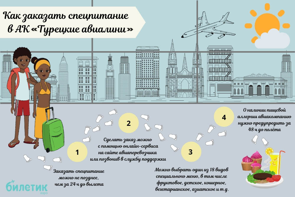 На рейсах «Турецких авиалиний» можно заказать следующие виды специального питания: