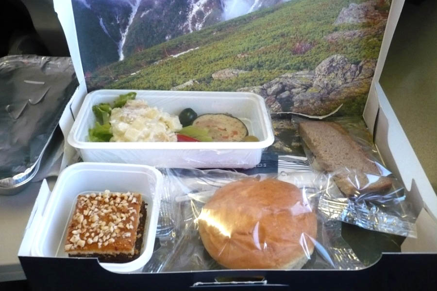 На рейсы «Авроры» можно взять в ручную кладь и свою еду. Здесь действуют основные правила пассажирских авиаперевозок, согласно которым на борт запрещено брать жидкости объёмом свыше 100 мл. Требование распространяется на соки, пюре, йогурты, джемы и т.п. Кроме того, не стоит проносить в самолёт скоропортящиеся продукты и продукты с резким запахом (например, от чипсов, копченой рыбы или молочных продуктов лучше отказаться). Идеальным вариантом окажутся разнообразные снэки — орехи, сухофрукты, шоколадные и фруктовые батончики, сухое печенье. Если предстоит долгий перелёт, можно сделать сэндвичи и бутерброды.
