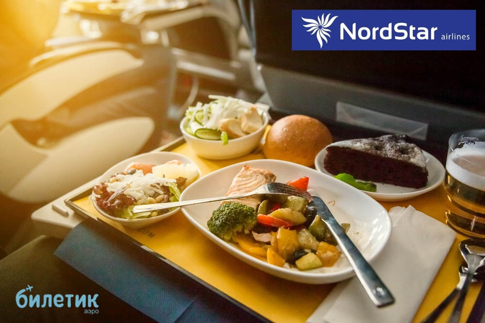 Авиакомпания NordStar входит в группу компаний «Норникель» и является одной из 15 крупнейших авиакомпаний России. Ежегодно услугами авиаперевозчика пользуется больше 1 млн человек. На рейсах путешественникам предложены три класса обслуживания: бизнес, эконом комфорт и эконом. Во время полёта туристы также могут заказать дополнительное или специальное питание в соответствии с тем или иными пищевыми привычками. Состав рациона зависит от направления, продолжительности рейса и воздушного судна, на котором предстоит перелёт. На лайнерах АТR 42-500 пассажирам предоставляют только холодные закуски, на самолётах Boeing 737-800 и Boeing 737-300 в течение маршрута кормят как холодным (от 3 до 4 часов), так и горячим питанием (свыше 4 часов).