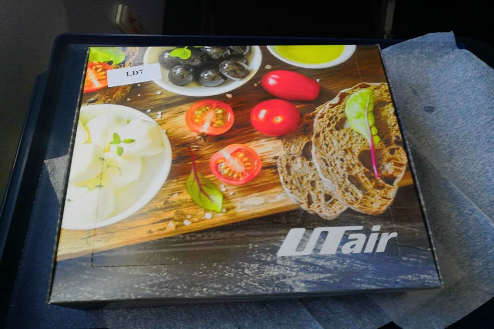Российская авиакомпания «ЮТэйр» ежегодно перевозит больше 7,5 млн пассажиров. На борту путешественникам предложено два класса обслуживания — бизнес и эконом. Бесплатное питание во время полёта доступно только в бизнес-классе. Для клиентов экономкласса с 2013 года эта услуга предоставляется за отдельную плату. Выбрать блюда можно из специального меню, разработанного шеф-поваром авиаперевозчика. Поэтому «ЮТэйр» предлагает два варианта для питания во время рейса — предусмотренный тарифом рацион для бизнес-пассажиров и заказ специальных блюд.