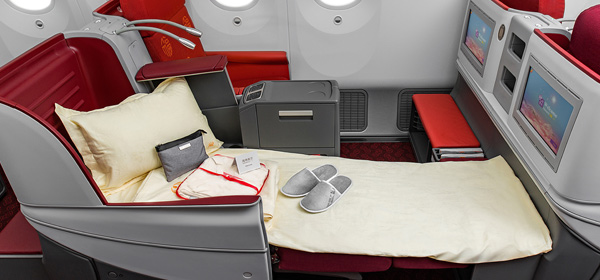 Салон бизнес-класса самолета Боинг 787-9 авиакомпании Hainan Airlines
